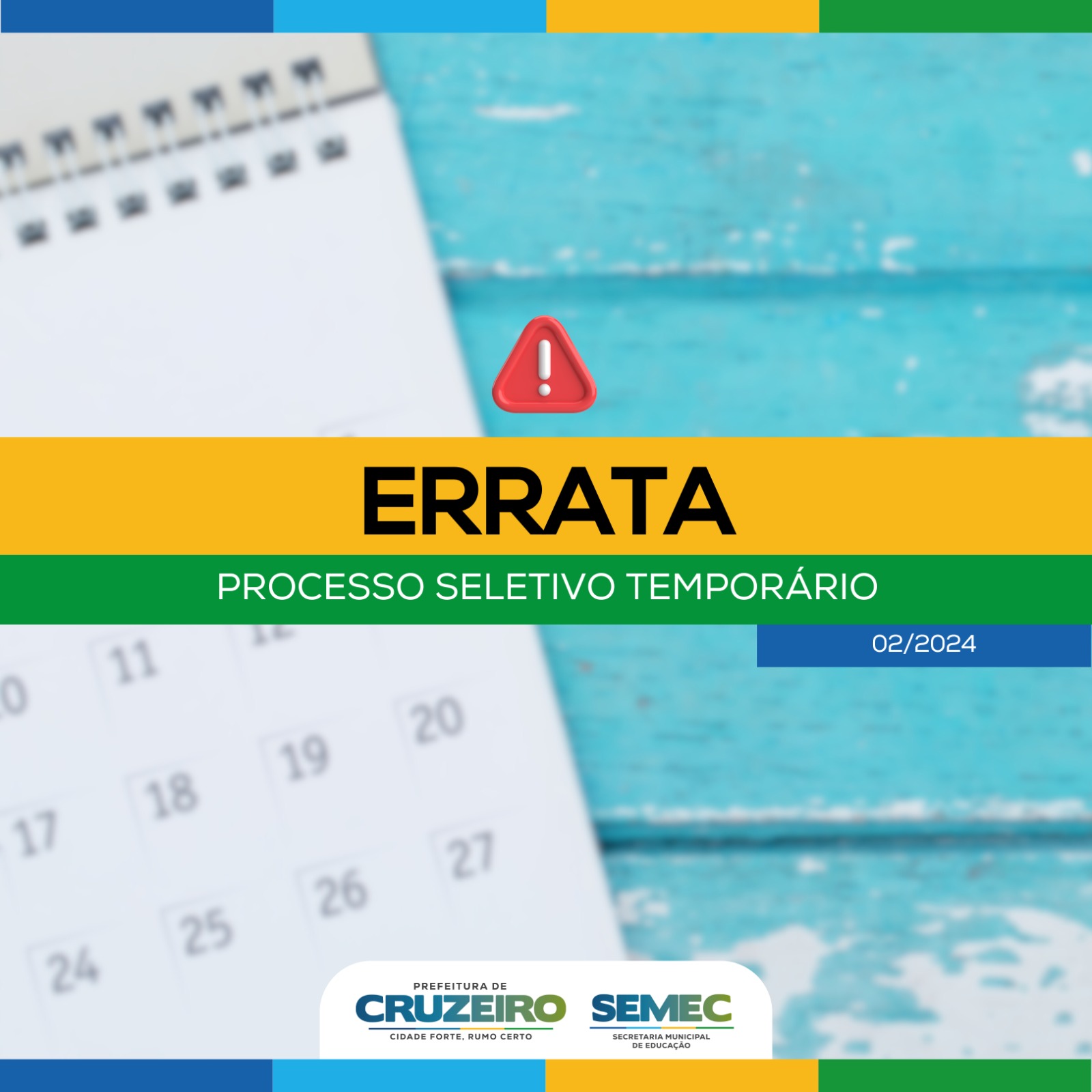 A Prefeitura Municipal de CRUZEIRO, em cumprimento às disposições constantes do Edital de Abertura de Inscrições do Processo Seletivo Nº 02/2024, vem, por meio do