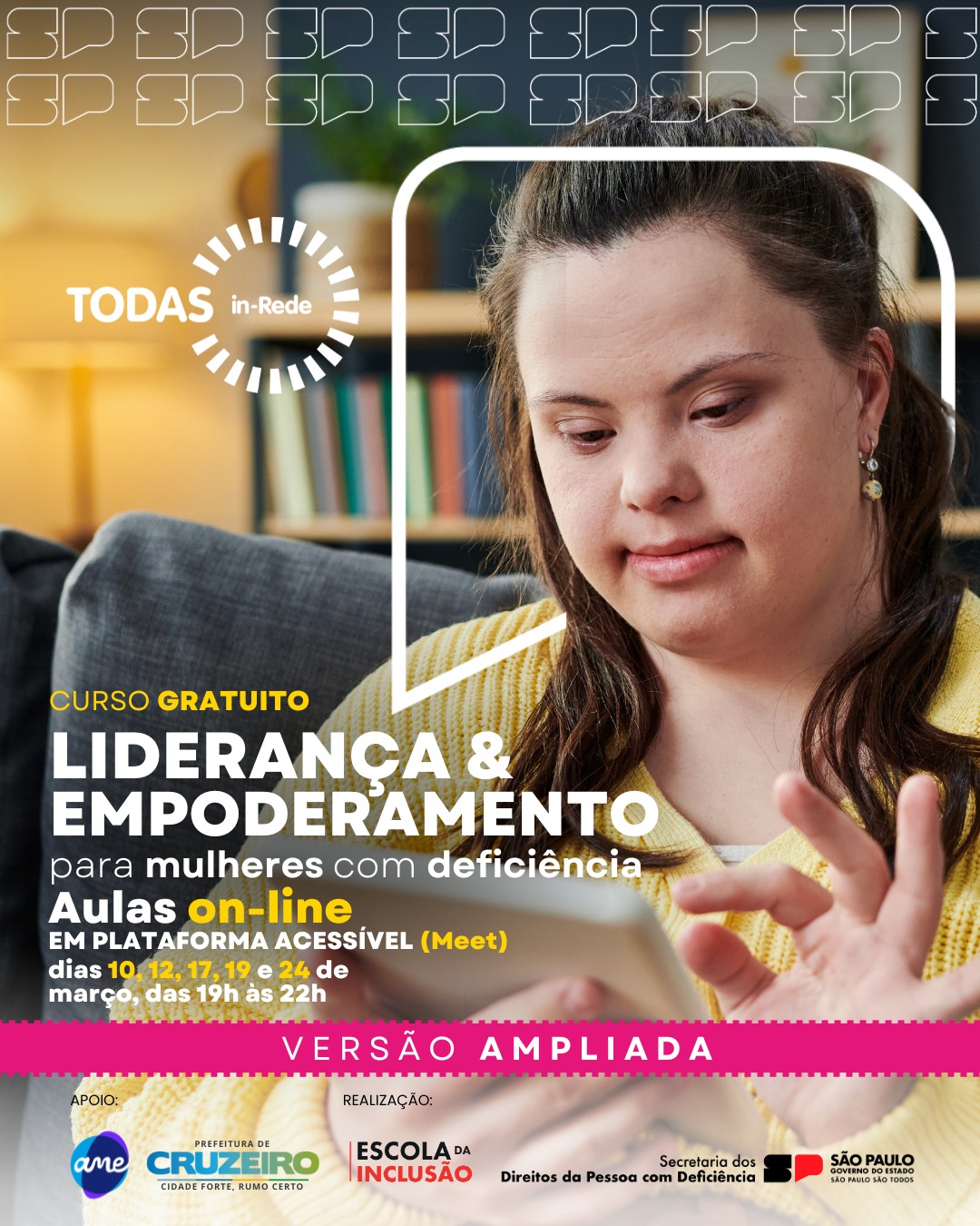 O curso gratuito faz parte do programa TODAS in-Rede, da Secretaria de Estado dos Direitos da Pessoa com Deficiência (SEDPcD), em parceria com a Associação AME e inserido na plataforma Escola da Inclusão.