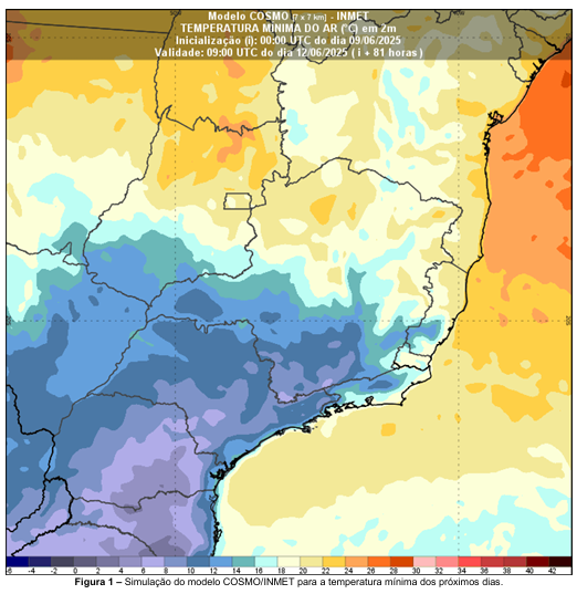 - Serra da Mantiqueira: Mínima de 2°C, com condição para geadas.