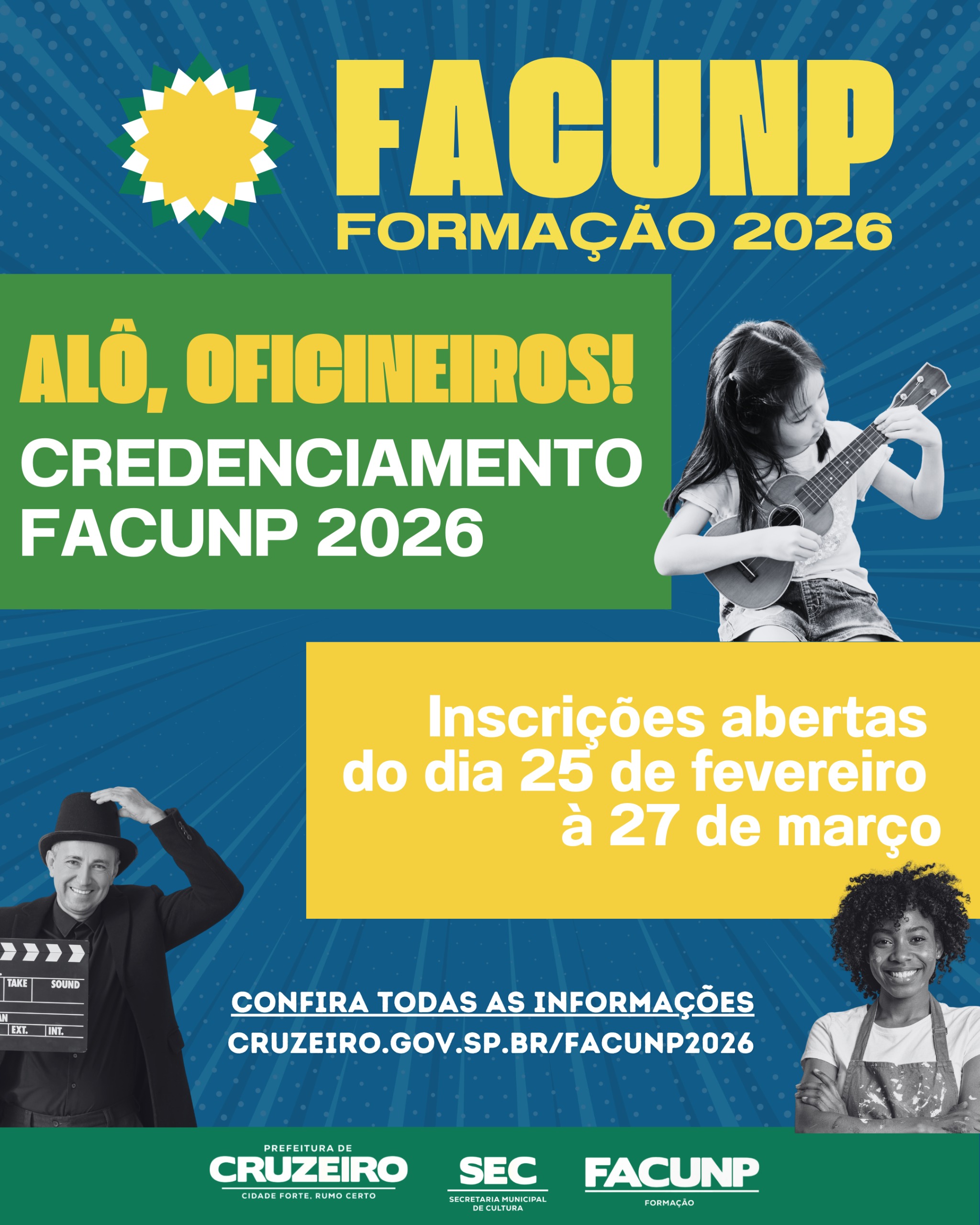 A Prefeitura de Cruzeiro, por meio da Secretaria Municipal de Cultura, torna público o CREDENCIAMENTO DE OFICINAS CULTURAIS – FACUNP FORMAÇÃO 2026