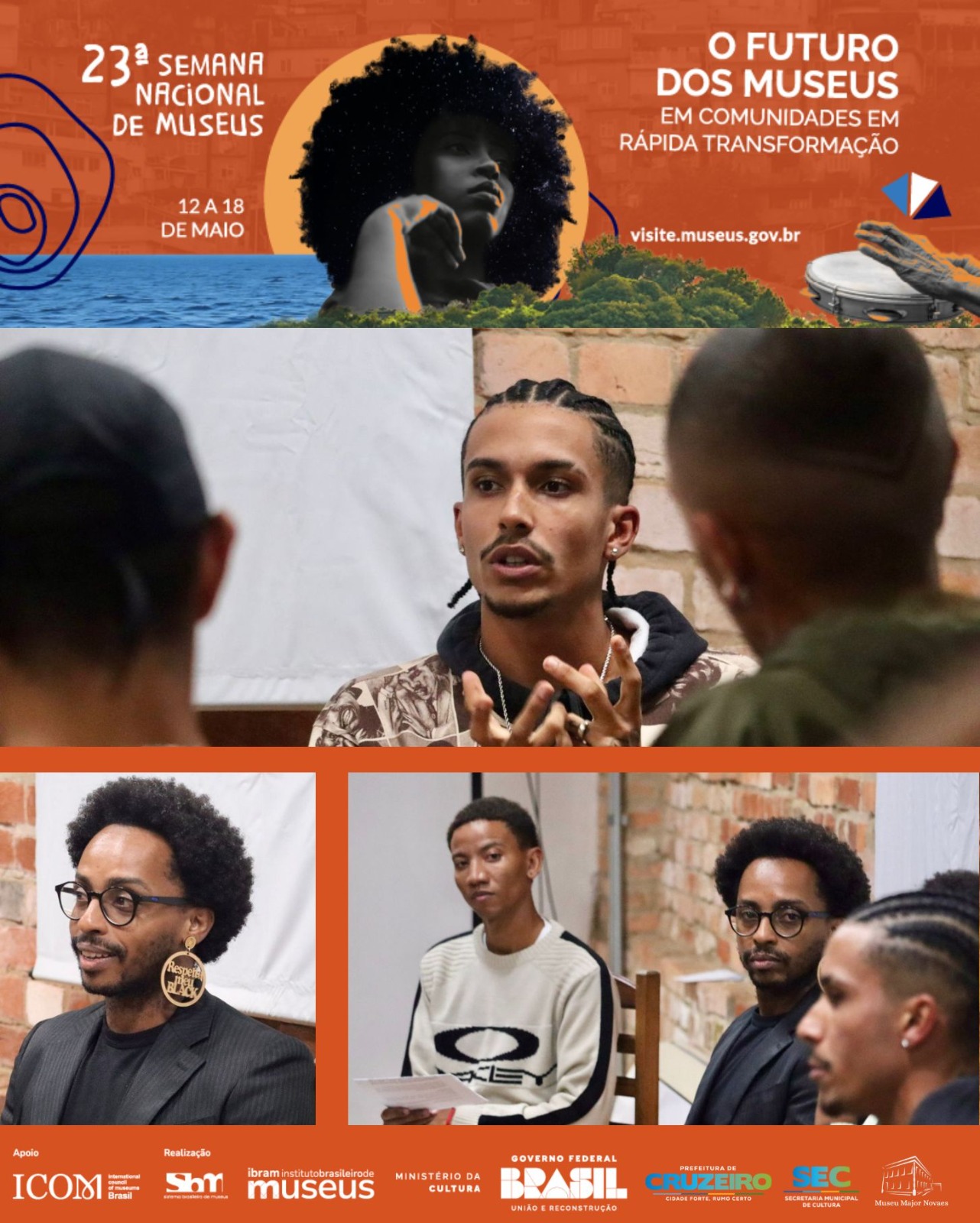No segundo dia, 16 de maio, o museu se abriu à participação da juventude em uma dinâmica de criação coletiva, que convidou jovens a reimaginar o espaço museal como lugar de pertencimento, inovação e convivência. O debate “Museus para quem? Juventude e democratização cultural” reuniu a comunidade cruzeirense para discutir o papel dos museus na inclusão de jovens e na ampliação do acesso à cultura. Encerrando a programação, o público foi presenteado com o sarau “A periferia que ressignifica o passado que pulsa no presente”, com apresentações de rap e slam de jovens artistas cruzeirenses.