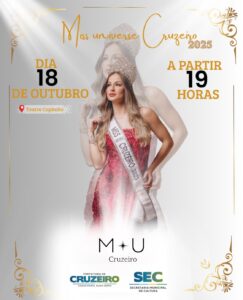 A Prefeitura de Cruzeiro promove, no próximo sábado, 18 de outubro, às 20h, no Teatro Capitólio, mais uma edição do Miss Universe Cruzeiro 2025. O