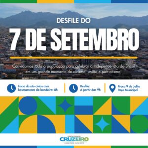 No próximo domingo, 7 de setembro, a cidade de Cruzeiro realizará o tradicional desfile cívico em comemoração à Independência do Brasil. O evento será