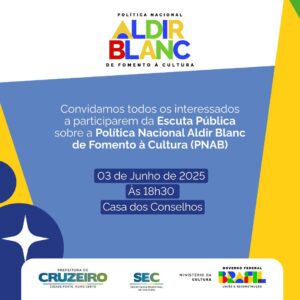 A Prefeitura de Cruzeiro, por meio da Secretaria Municipal de Cultura, realiza no próximo dia 03 de junho de 2025, às 18h30, na Casa dos